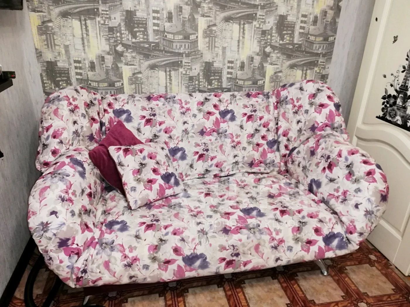 Диван как новый, чистый. Яркий, снимающейся чехол. Впишется в любой интерьер. Имеются 2 подушки в комплекте.