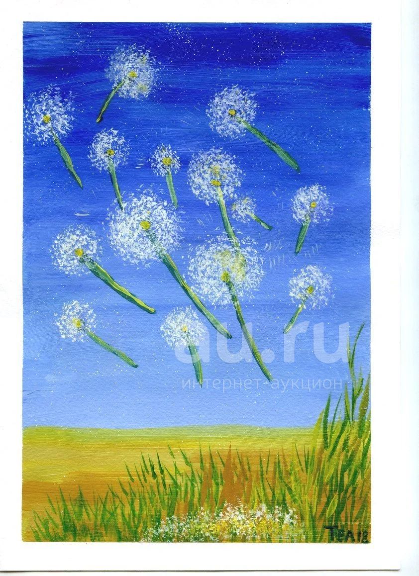 картина 002 ветер и одуванчики гуашь