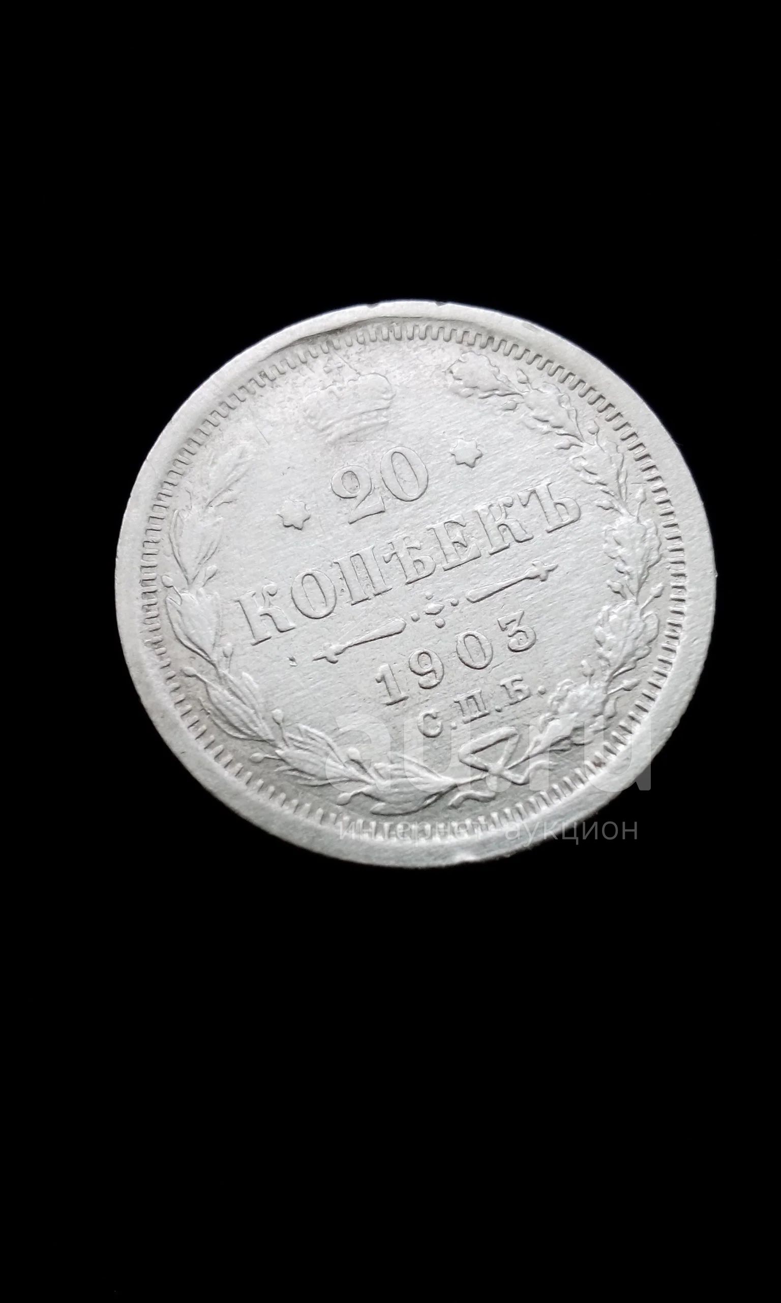 20 копеек 1903 царская монета 2 Николай II оригинал СПБ АР серебро
