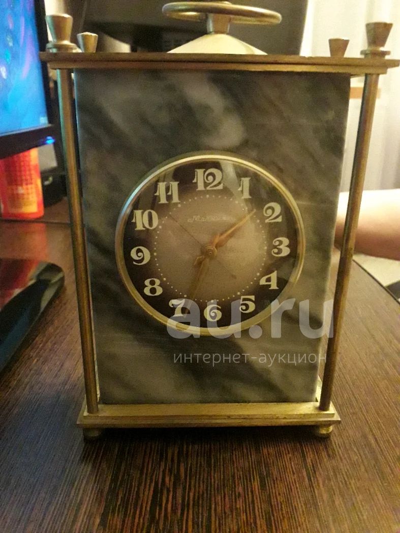 Точный часовой механизм. На натуральном мраморе, родная патина на латуни. Состояние отличное, на ходу