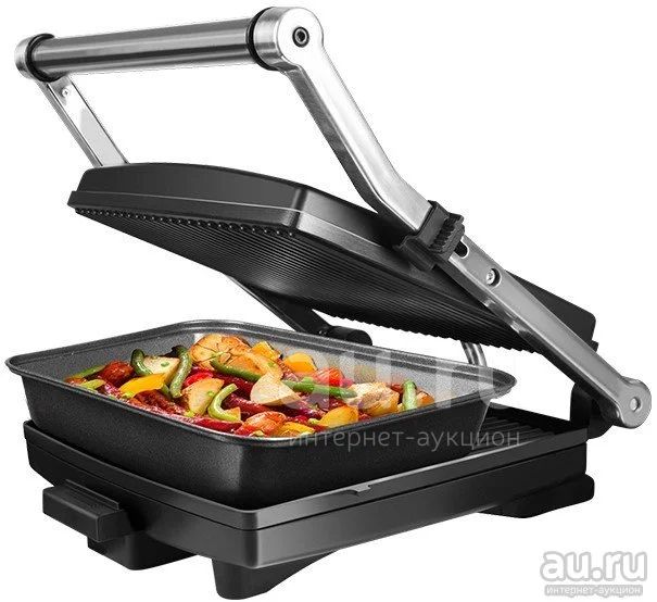 На крышке прибора предусмотрен регулятор мощности. Вы можете выбрать один из 5 режимов нагрева. Максимальный подходит для жарки мяса и выпечки, на среднем удобно готовить десерты, а при минимальной температуре – разогревать готовые блюда или греть булочки для бургеров и сэндвичей.