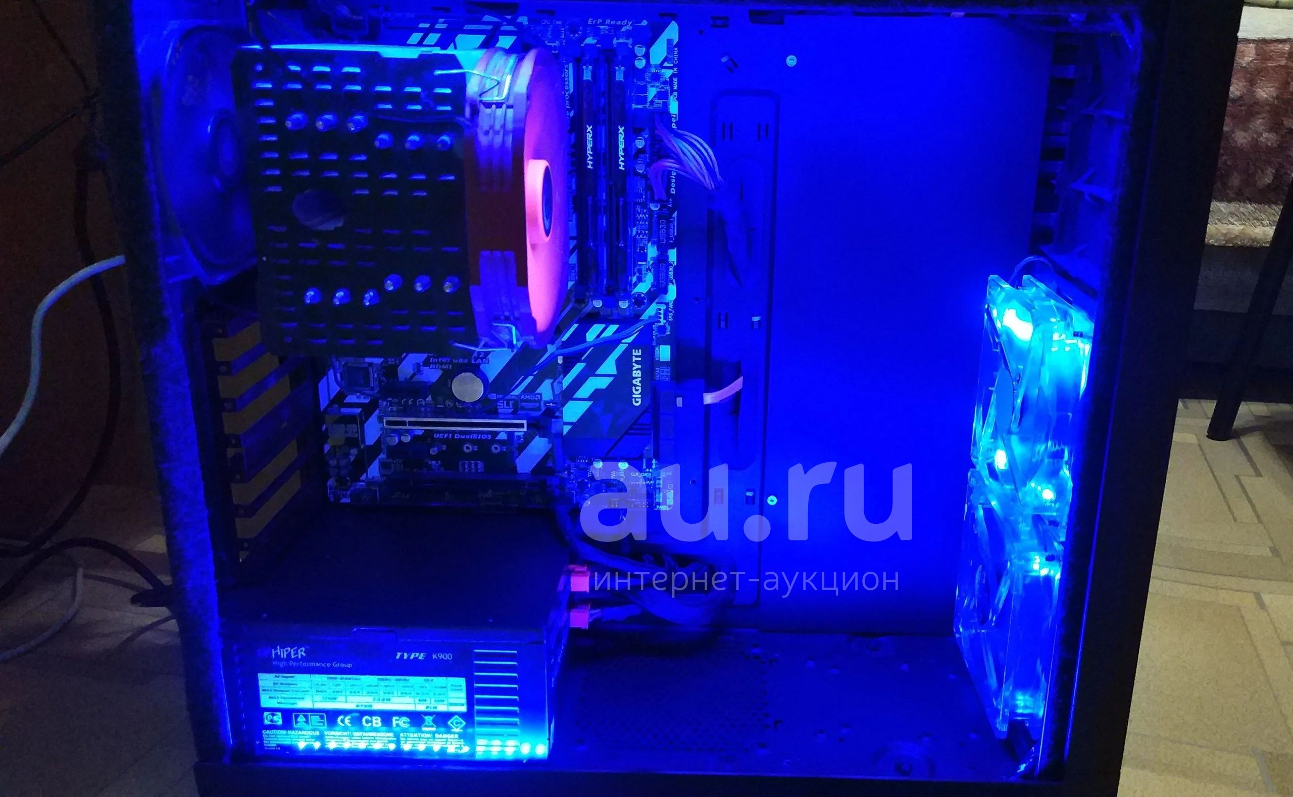 Внешне сток (состояние на 4+), есть место под водянку, установлено прозрачное окно из оргстекла, синяя подсветка и вырезано все лишнее. В комплекте идут 2 вентилятора, корзина под HDD ( под верхней крышкой также вырезано место под HDD) и антипылевые фильтры.
