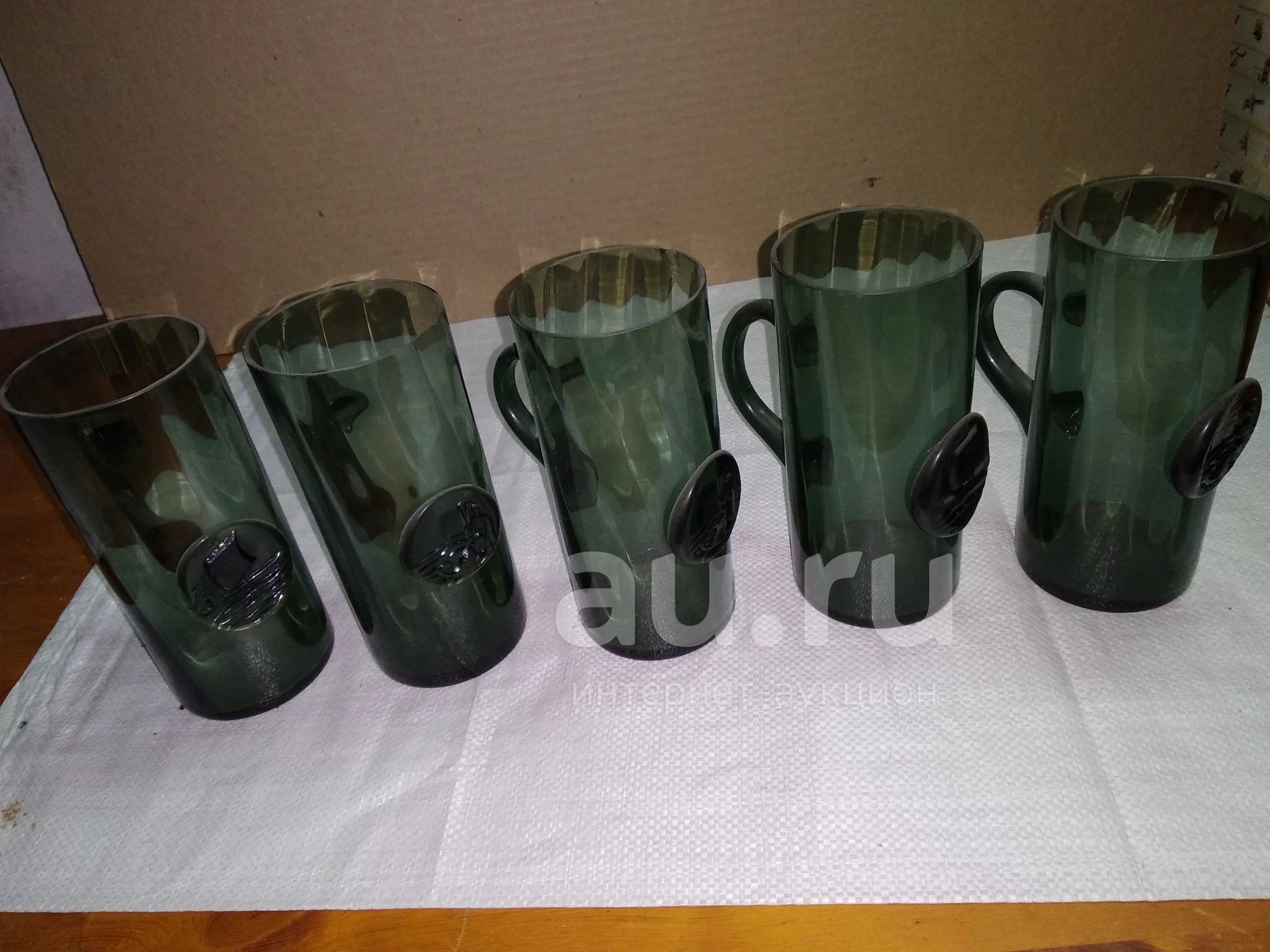 одним лотом стакан зеленый 5 шт, из СССР....все целые красивые, (у одного есть сколы см фото) высота 167 мм, диаметр 75 мм...(3-3\3)