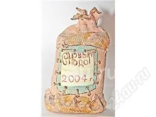 Копилка керамическая в форме мешка. на фото есть надпись "С новым годом 2004" - сейчас двух последних цыфр нет - они специально стерты, чтоб модно было нарисовать 2010