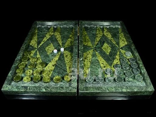 Нарды из змеевика 480*435*28мм, в чемодане кожзам