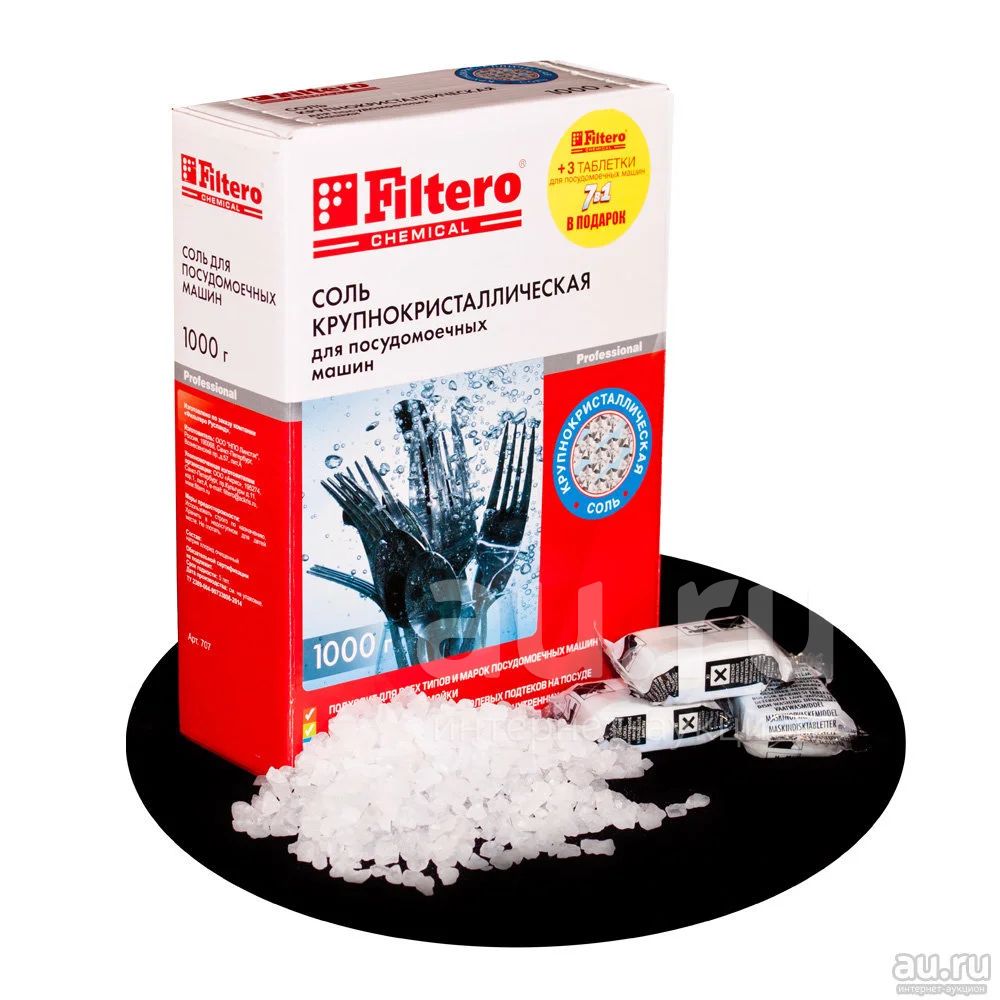 АКЦИЯ! В каждой упаковке соли 3 таблетки Filtero "7 в 1" для посудомоечных машин В ПОДАРОК!
