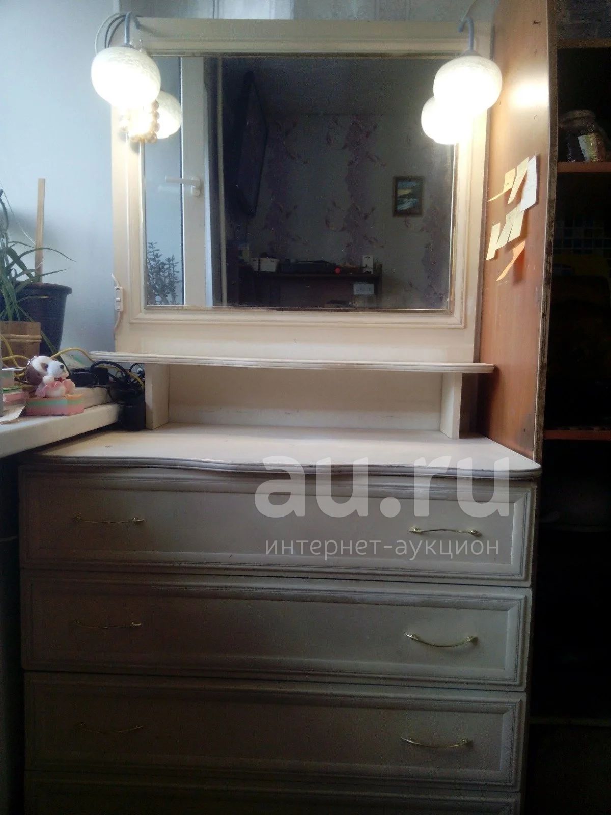 Продам комод.шир.90см.глуб.57см.выс.стола 76см.с зеркалом170см.нет 2х ручек.светильники в комплекте.