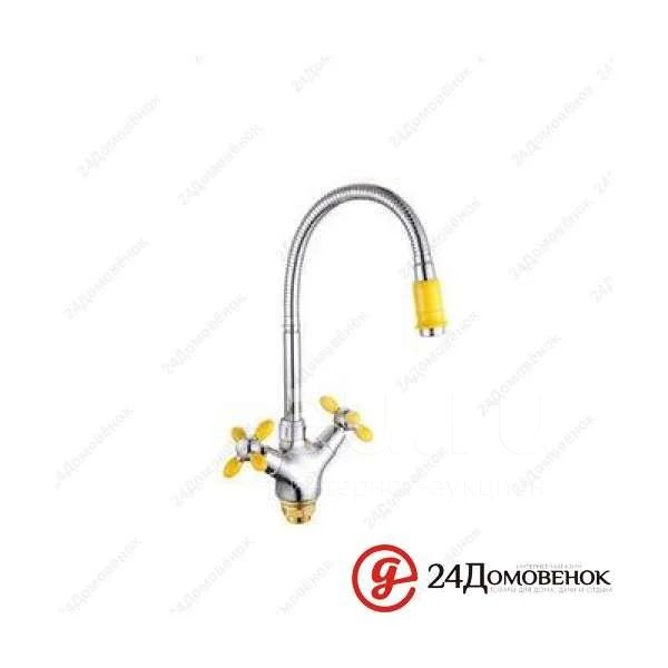 Смеситель для мойки Potato Р5860-10, c гибким изливом, цвет-желтый, цветным наконечником и ручками