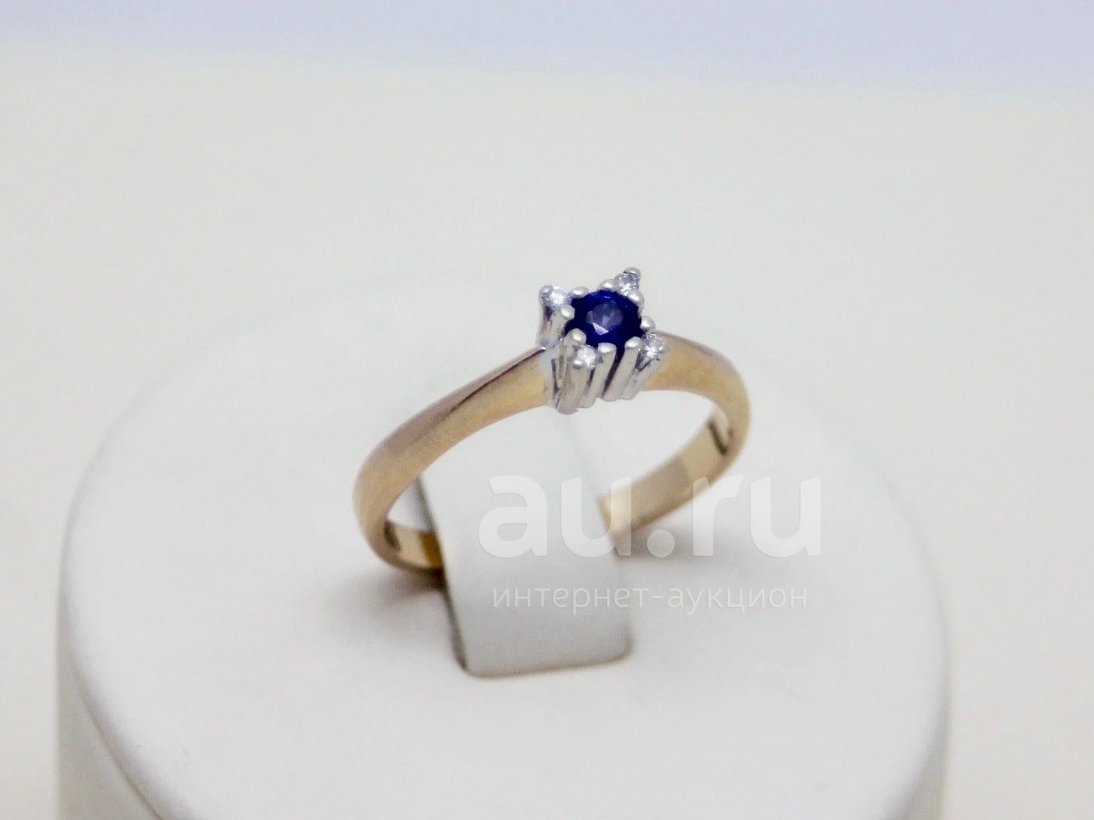 Кольцо из золота с бриллиантами и сапфиром.
