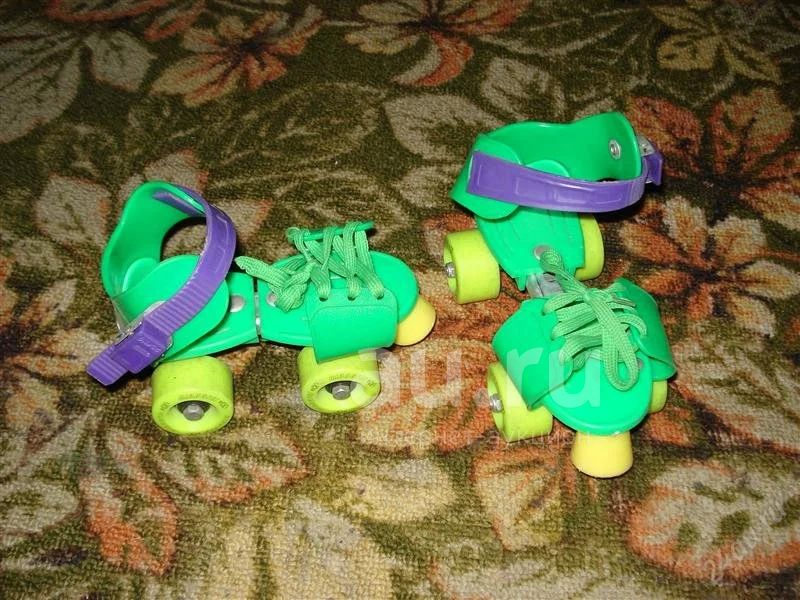 Коньки роликовые раздвижные от 16 до 21 сантиметра по ступне. Одеваются на обувь, два ряда колёсиков.