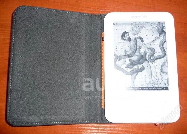 Электронная книга Amazon Kindle 3G, ныне называемая Kindle Keyboard 3G, без рекламы, белого цвета плюс фирменный амазоновский кожаный чехол оранжевого цвета c встроенной подсветкой.