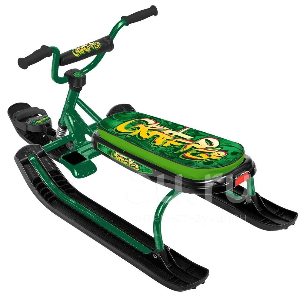 Металлическая надежная рама, устойчивая конструкция, лыжи и руль из морозостойкой и ударопрочной пластмассы, удобная травмобезопасная форма руля, руль обеспечивает оптимально комфортную посадку, эффективный тормоз, позволяет разнообразно маневрировать, большое мягкое сиденье, возможность посадки двух седоков, буксировочный трос, обеспечивая безопасность и комфорт, дизайнерский рисунок на сиденье.