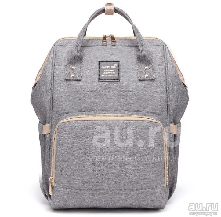 Сумка-рюкзак для мам непромокаемая термо Machine Bird серая