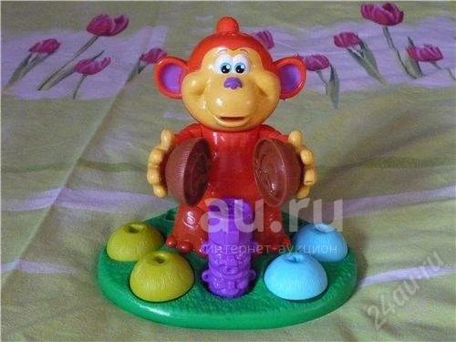 пластмассовая обезьянка, 3 формочки (которые вставляются в руки обезьянке).