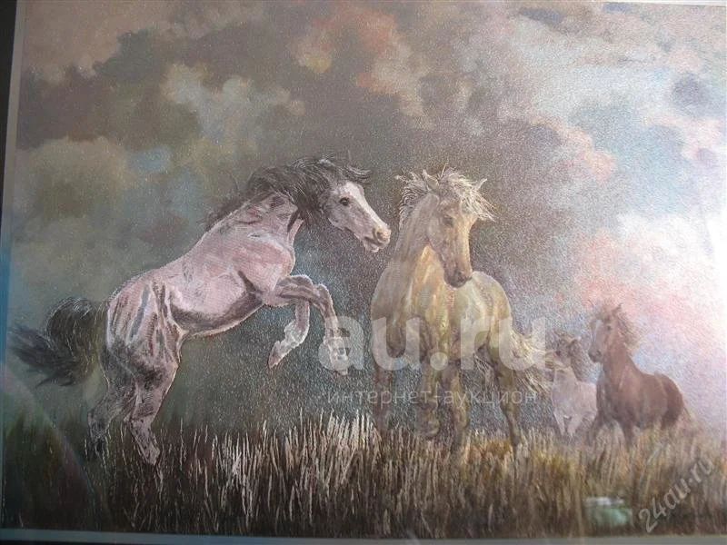 Картина "Лошади" Шелкография (27*22см в рамке)Польша