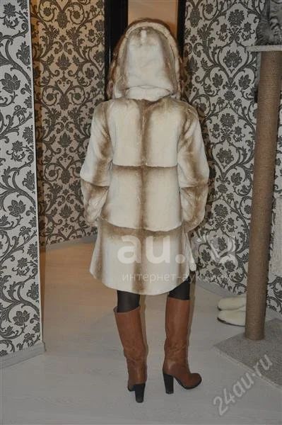 Шуба белая с капюшоном из норки, по швам - светлокоричневый окрас, шуба в отличном состоянии.