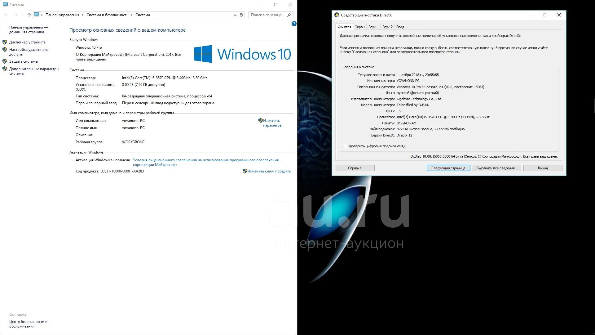 Процессор: I5-3570( 4 ядра с частотой 3.40 GHz, есть встроенное видео ядро( в доту на мин можно играть)