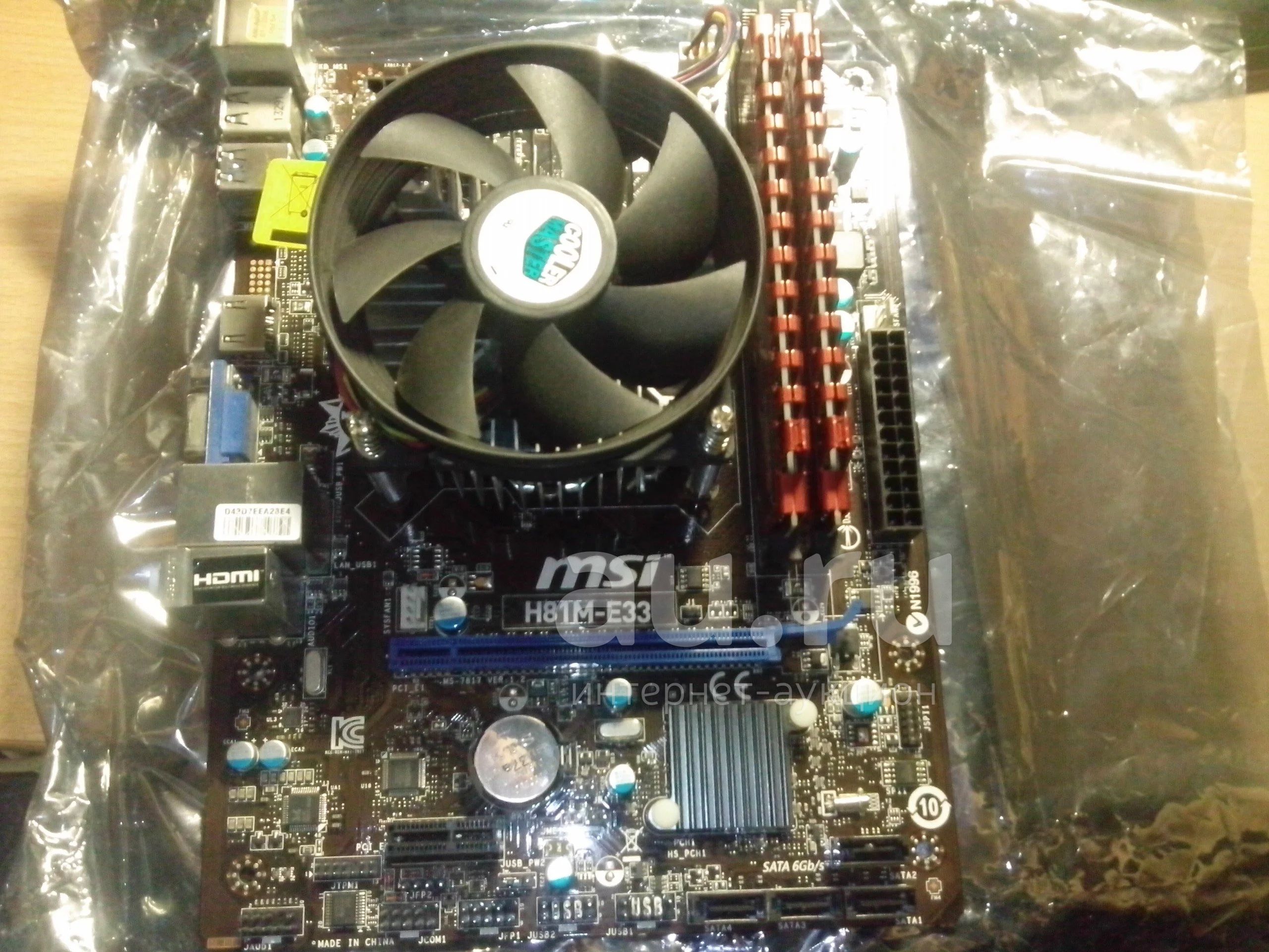 - Мать MSI H81M-E33 (коробка, заглушка, ПО)