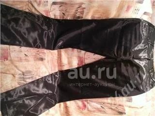 Брюки атласные, блеск приглушённый, не навязчивый. Можно носить в осенний период, ткань плотная. Размер где-то 44, может 46. Одевались один раз. Потом стали малы