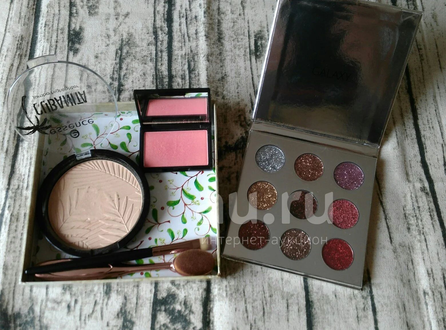 Все сроки в норме, продаю, так как есть более дорогие аналоги.Кисти продезинфицированы. Тени глитерные, хайлайтер - лимитированная коллекция essence, румяна от sleek - практически точный аналог Nars Orgasm.