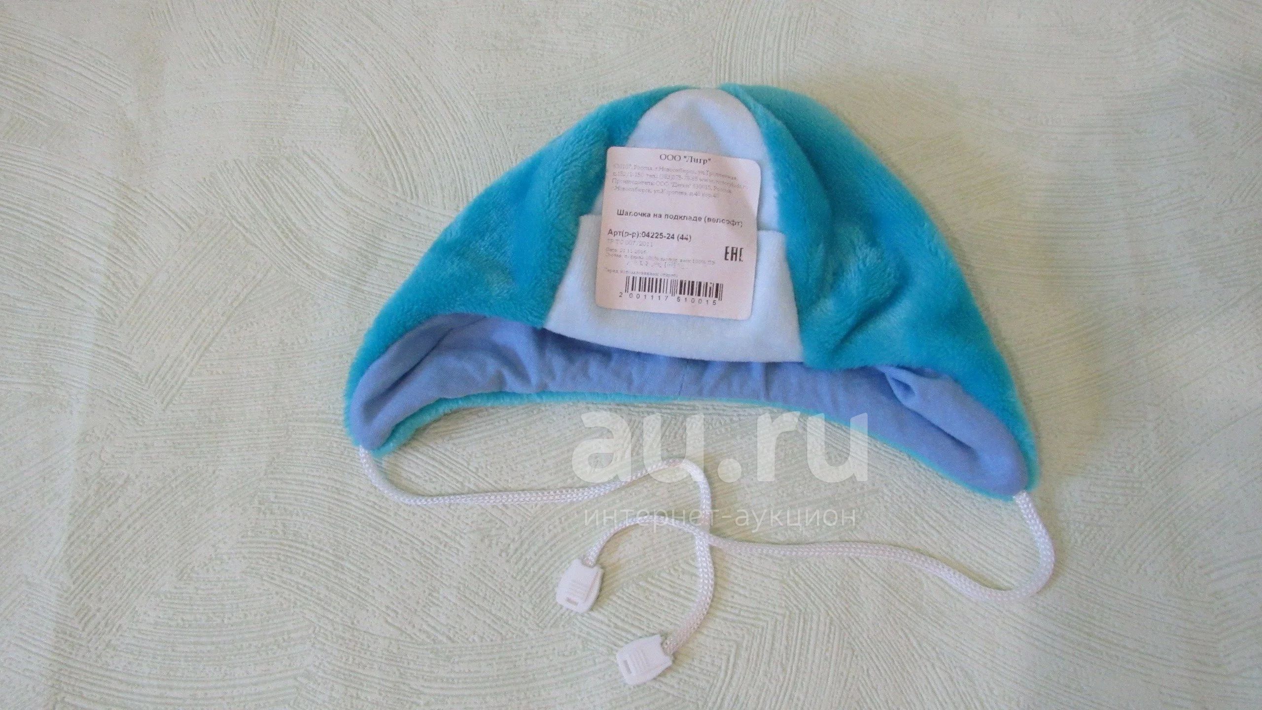 Новая шапочка на 3-6 мес. Демисезонная или на прохладное лето. Верх велсофт, подкладка нежнейший хлопок