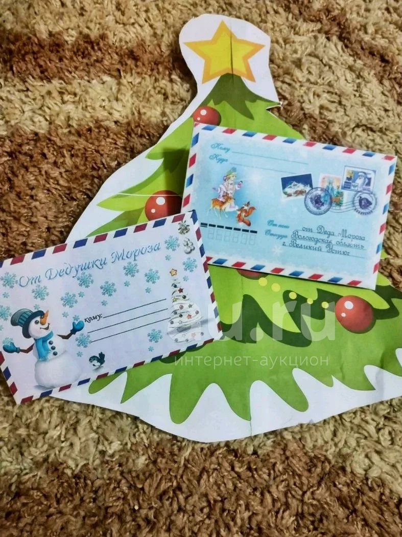 Письмо и конверт от Деда мороза детям. По шт. Конверт и письмо Деду морозу. На фото первое.