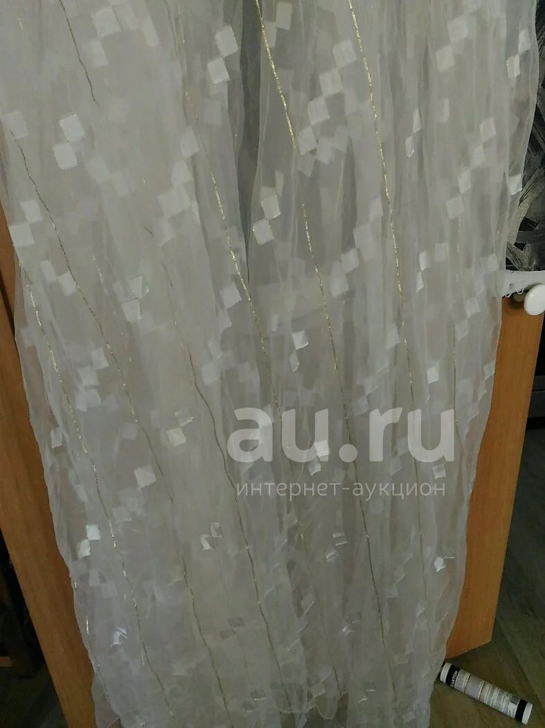 Тюль 5.5 м, высота 2.45 м, на широкой шторной ленте, белая, золотые нити, в хорошем состоянии, требует глажки