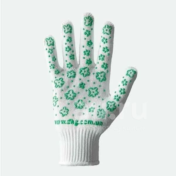 Перчатки белые с зеленым ПВХ 10 класс (620) Женская