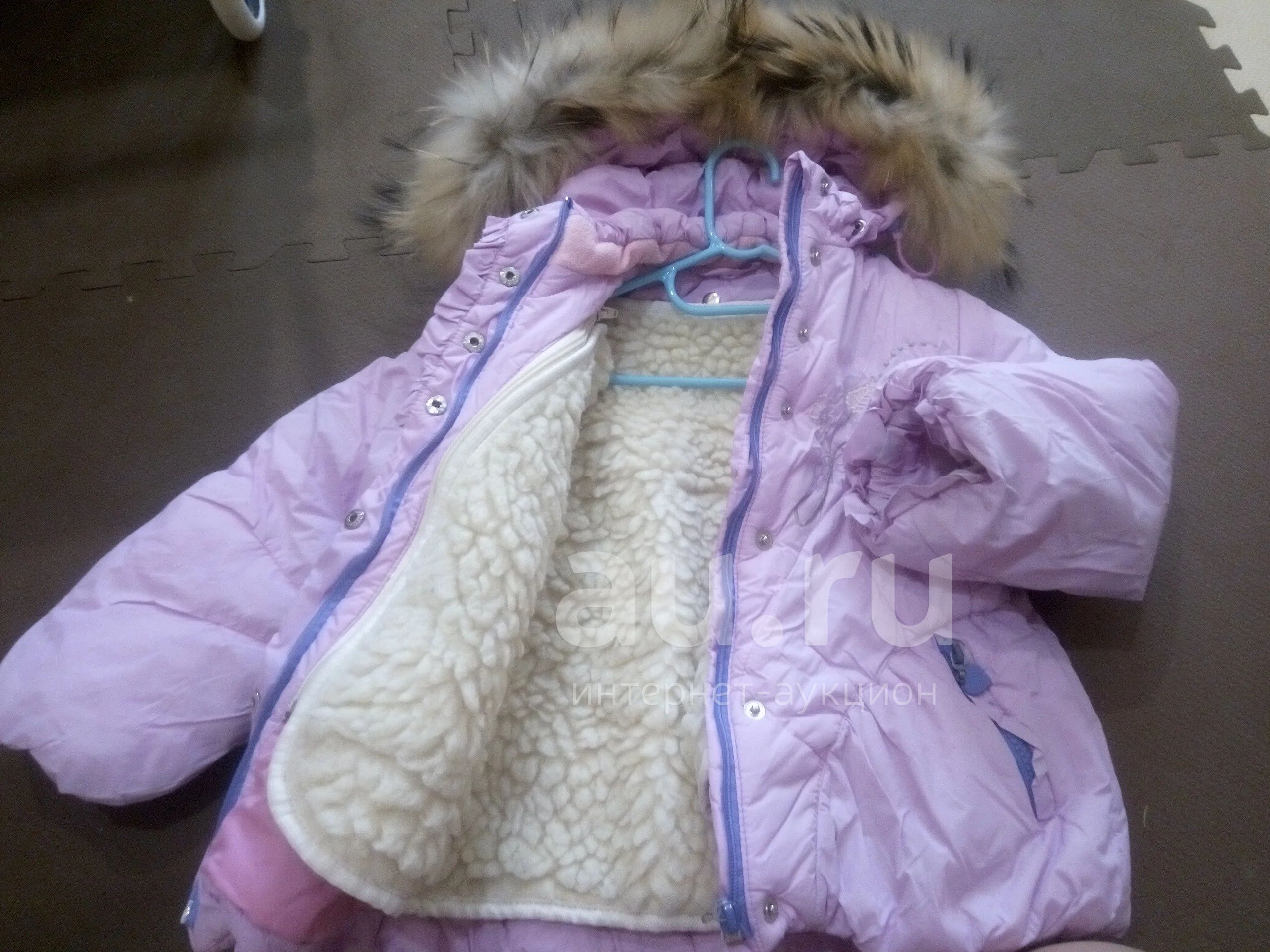 Отличная теплая куртка, на синтепоне, воротник и в поясе не утяжках, мех на капюшоне и меховая жилетка отстёгиваются. Без пятен и потёртостей. На рост 98 и меньше))) на этикетке стоит 98