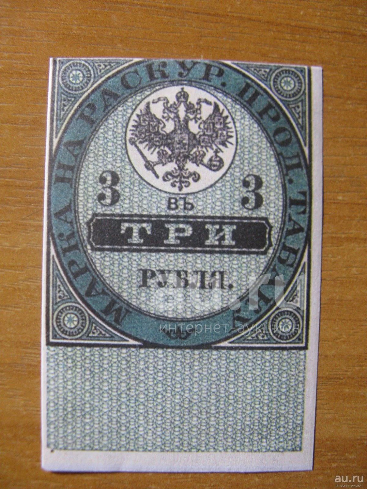 3 рубля. Акцизная марка на раскур. прод. табаку. Водяные знаки.