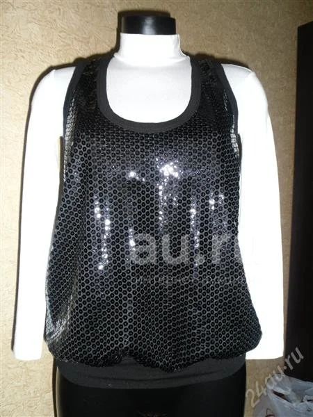 Очень стильный блузка-топ итальянской фирмы-IMPERIAL,(размер 44-48,так как крой слегка свободный,покупали в Италии,в магазине,состояние отличное-одевался 2 раза,можно носить на голое тело или с водолазкой сеткой,либо одевать под низ белую блузку-очень стильно смотрится!Паетки плотно нашиты на саму ткань,легко стирается в машинке.