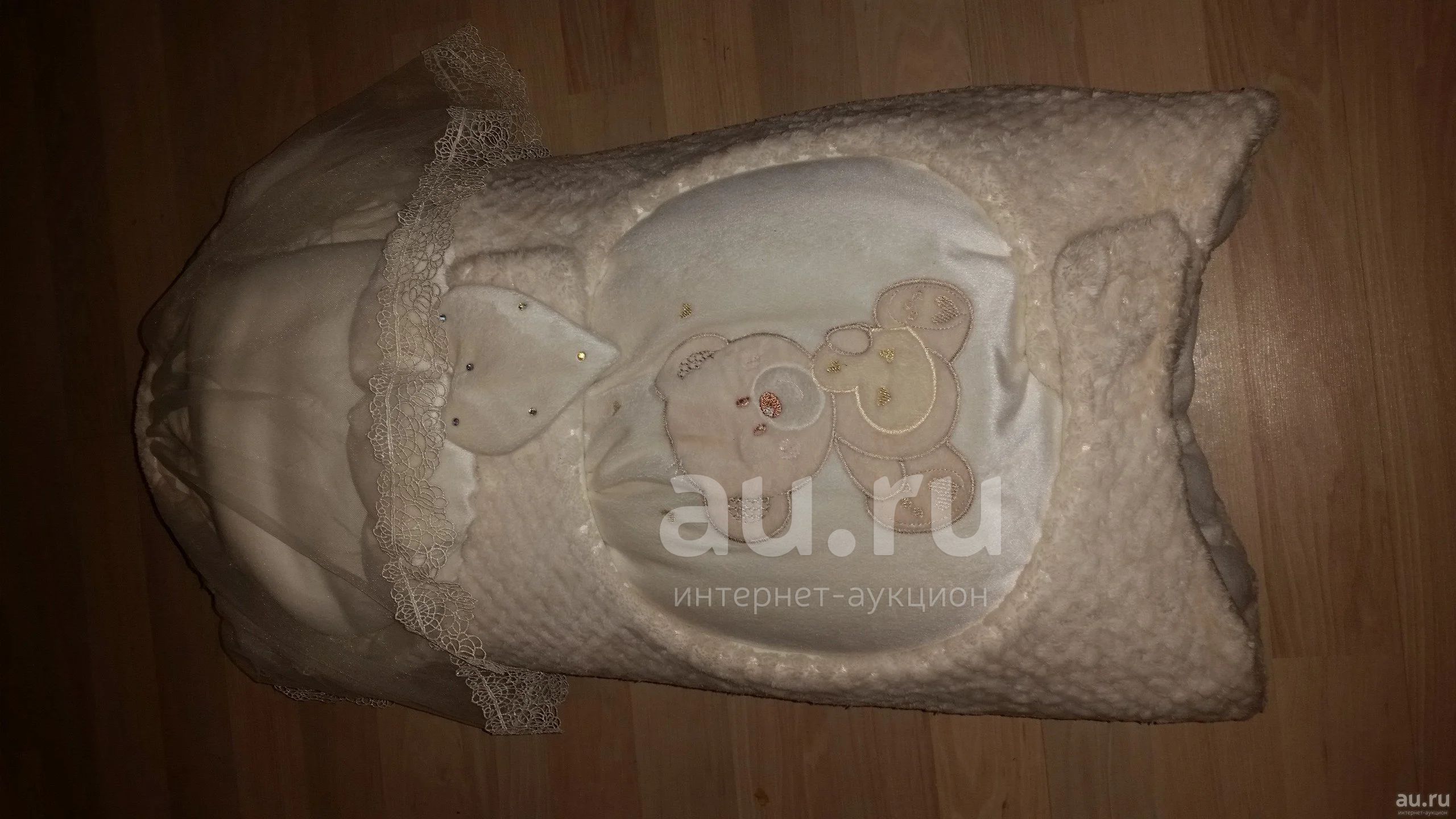 Комплект из 6 предметов: конверт с перелиной, одеяло трикотажное(90×90см), пеленка на липучках, чепчик, шапочка теплая, распошонка. Ткань: вельбоа, искуственный мех, кулирка. Модель: мишка-зайка, тип: конверт-одеяло, сезон: зима, пол: унисекс, застежки: липучки, молнии, утеплитель: синтепон, цвет: молочный.