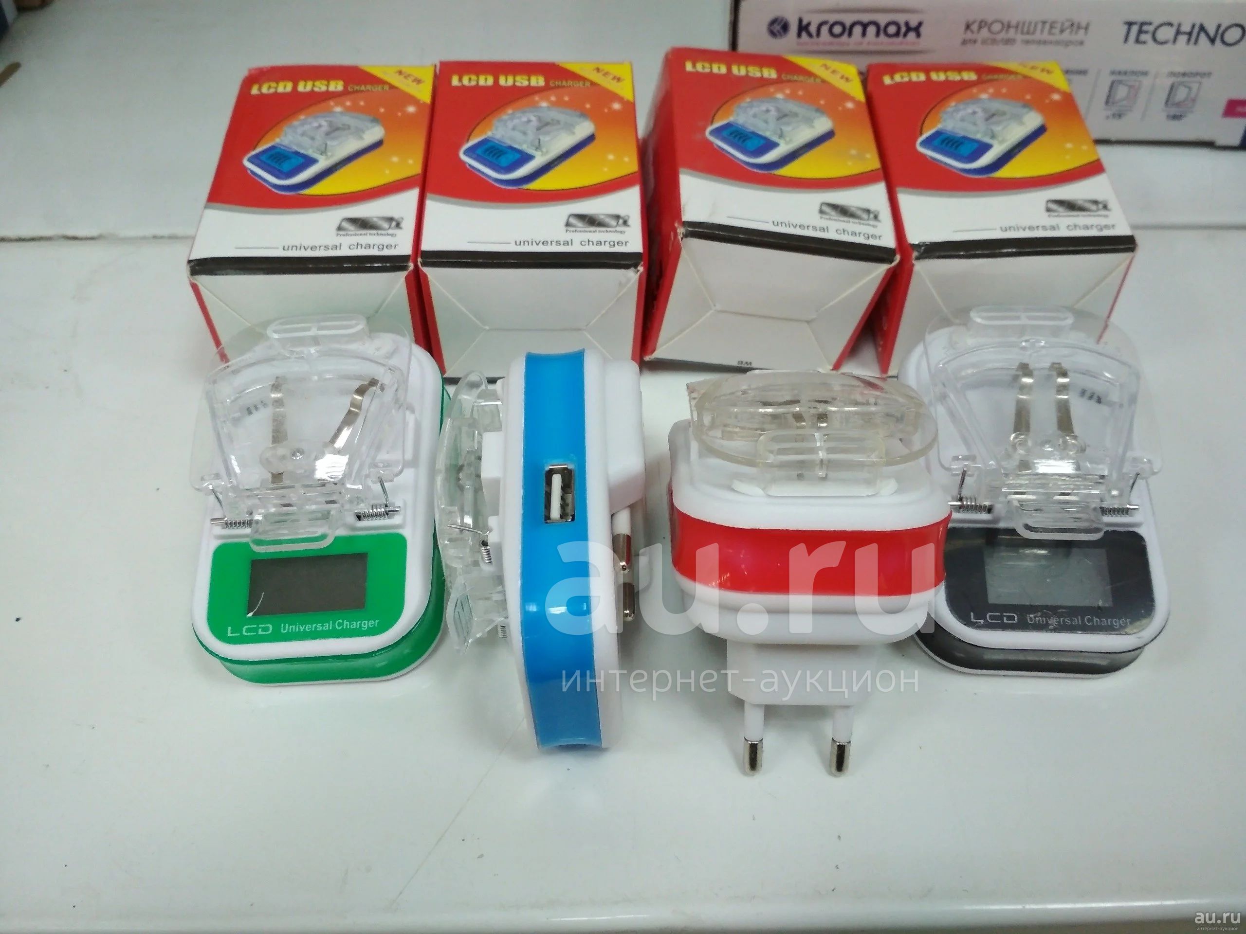 Универсальное зарядное сетевое (лягушка) KT-U300 , с дисплеем +USB выход 300mA Blue 14288