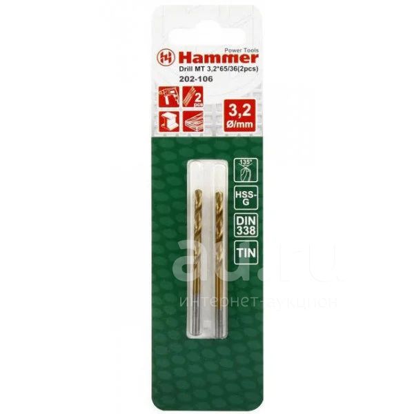 Купить Сверло Hammer Flex 202-106 DR MT 3,2мм*65/36мм металл, DIN338, HSS-G, TIN, 2шт. в интернет магазине Домовито24.Большой выбор товаров для дома и дачи. Доставляем товар по г. Красноярск, а так же по России почтой или ТК. Оформить заказ Вы можете на сайте или по телефону 2-95-85-67.