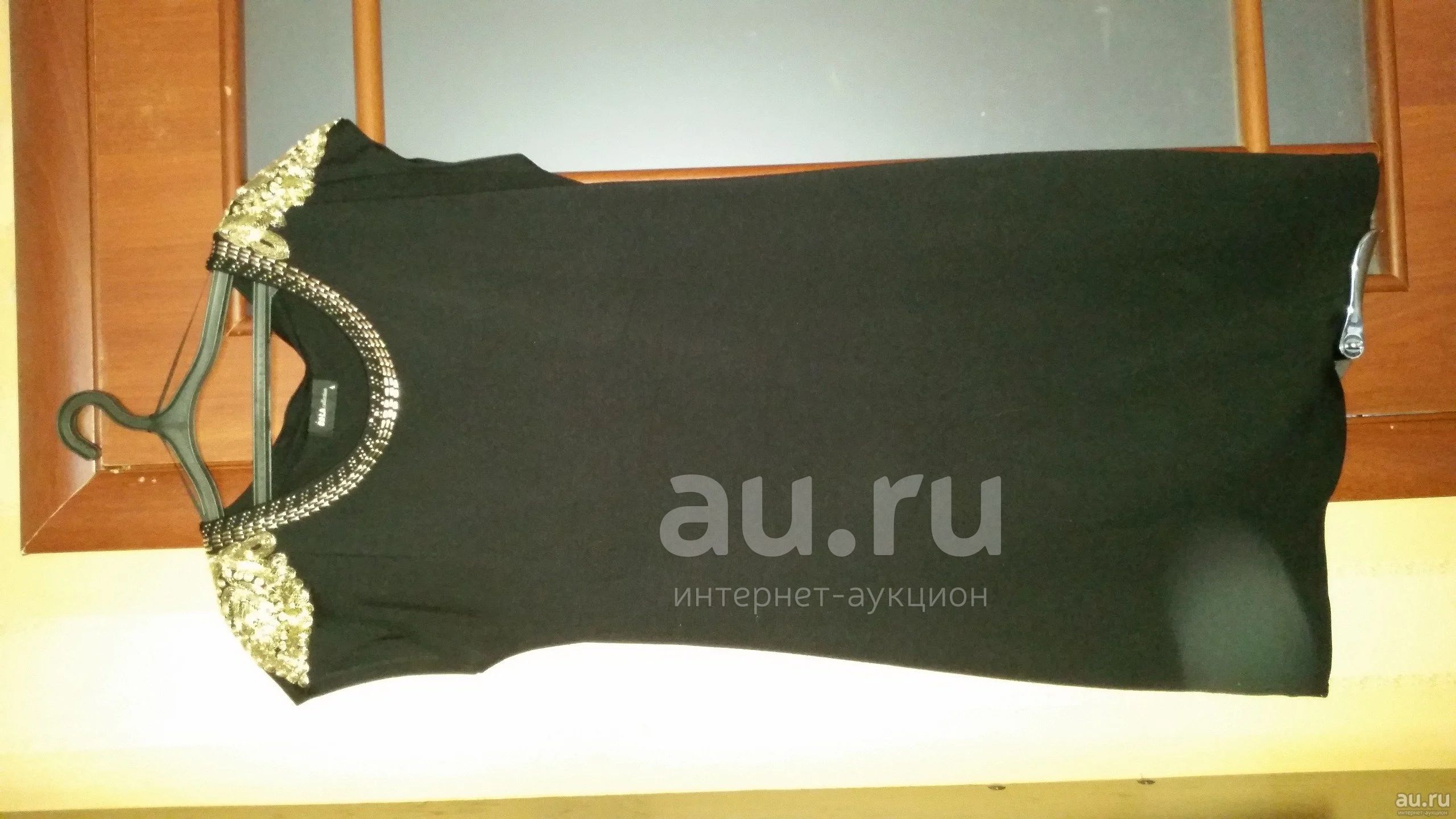 Платье черное до колен, без дефектов, на плечах вышевка золотыми нитями и стразами, платье сидит по фигуре, но не в обтяжку
