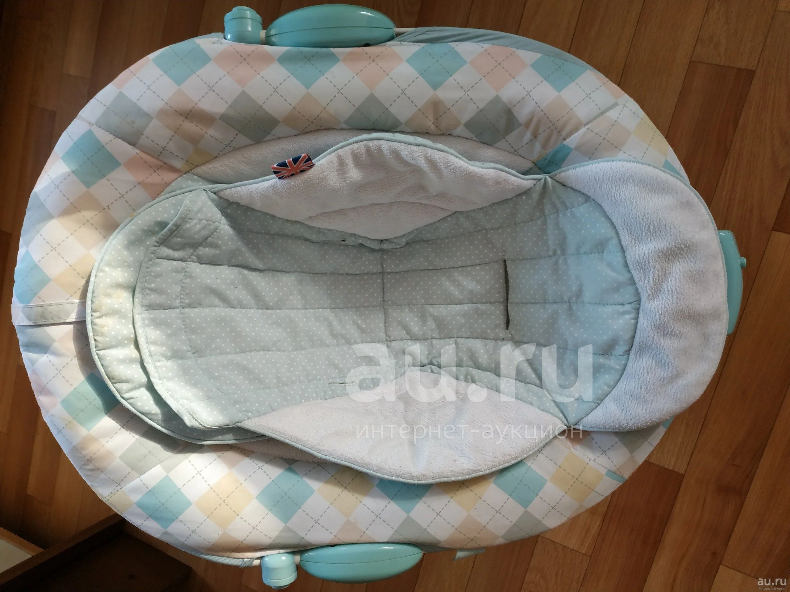В хорошем состоянии, угол наклона меняется, есть подкладка для тела и головы, есть ремни, есть мелодия на двух уровнях громкости, есть вибрация. Все снимается и стирается.
