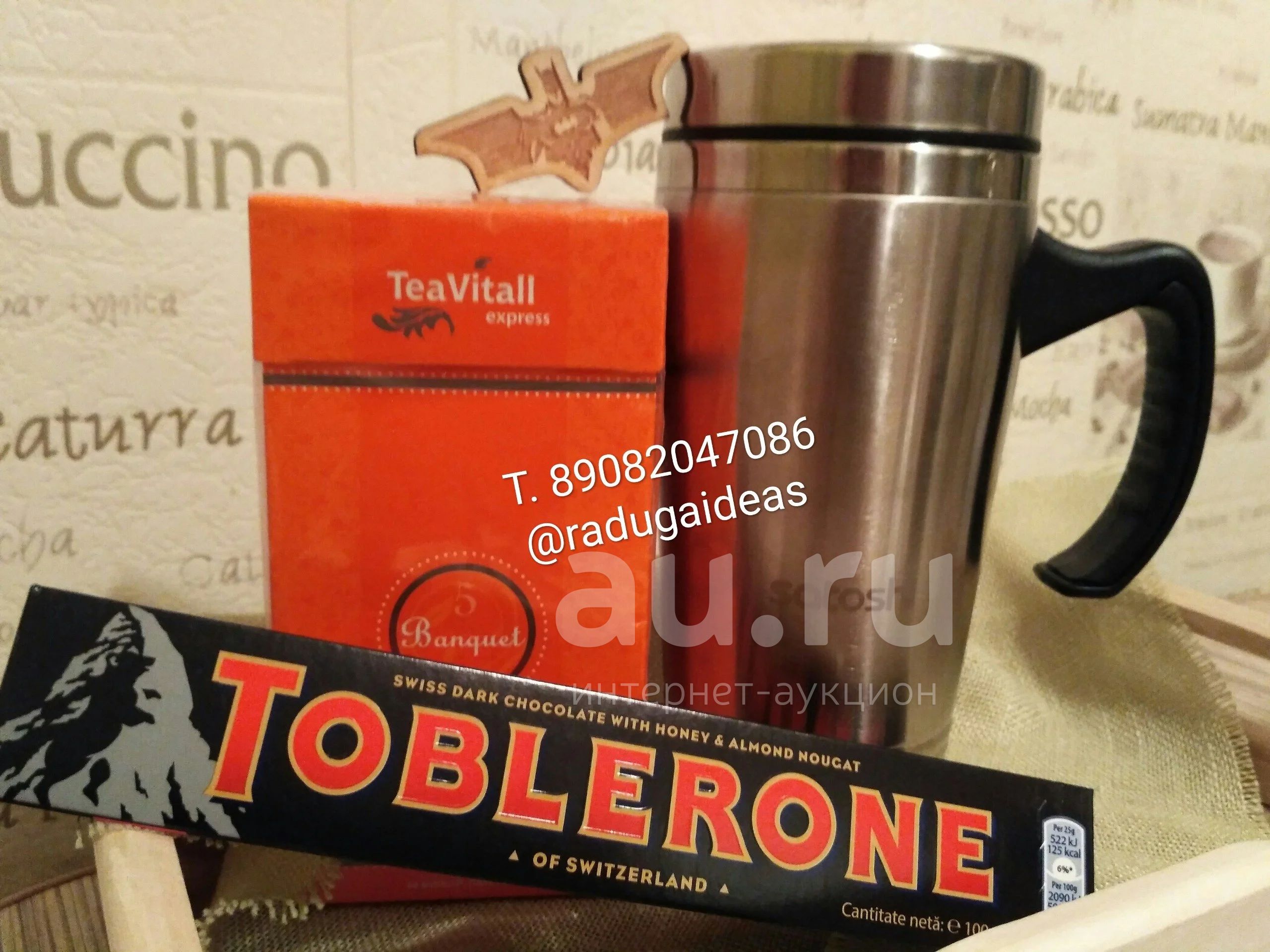 Состав подарка: термокружка, шоколад, чай значок, см. фото