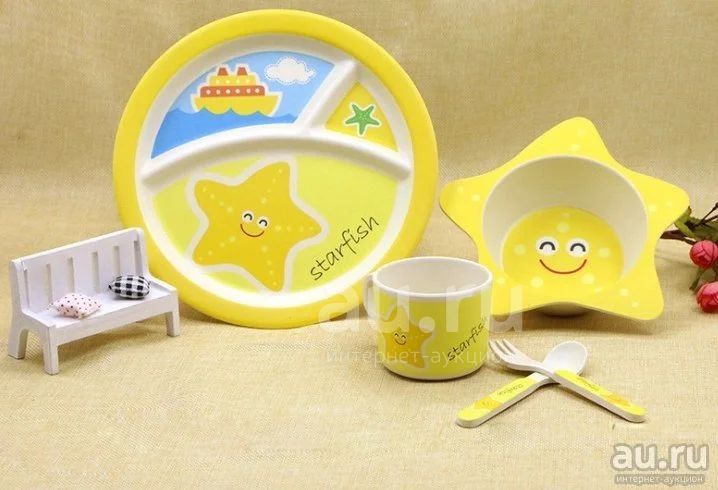 Детский набор бамбуковой посуды, посуда из бамбука, бамбуковая экологичная посуда для детей с круглой тарелкой Звезда НОВЫЙ