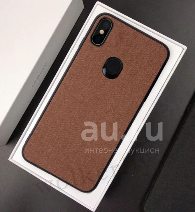 Чехол (бампер) Xiaomi Redmi Note 6 PRO(Коричневый) с тканевой вставкой/ мягкая силиконовая рамка+ ткань