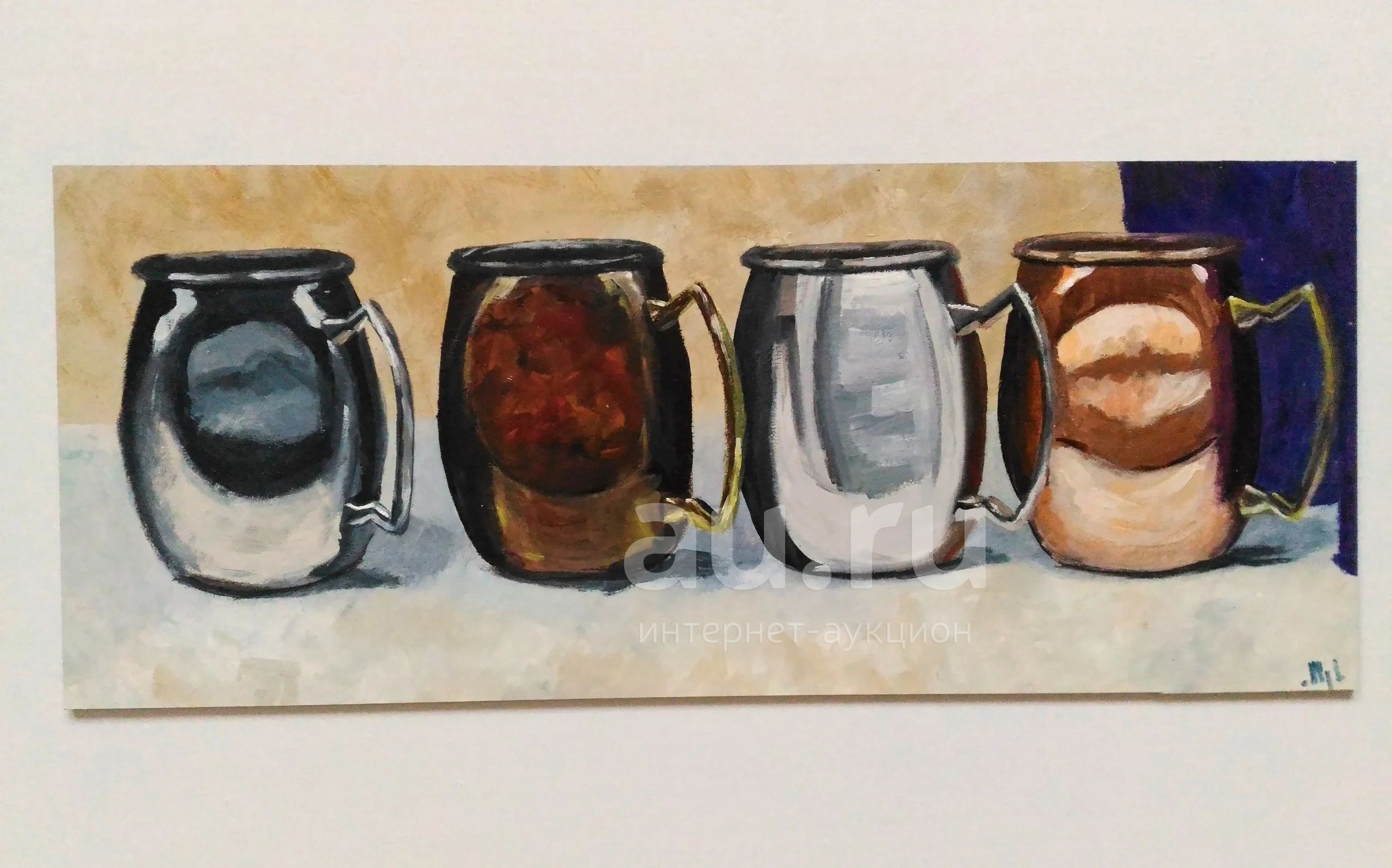 Четыре кружки, Натюрморт, Живопись, Картина маслом, Декор