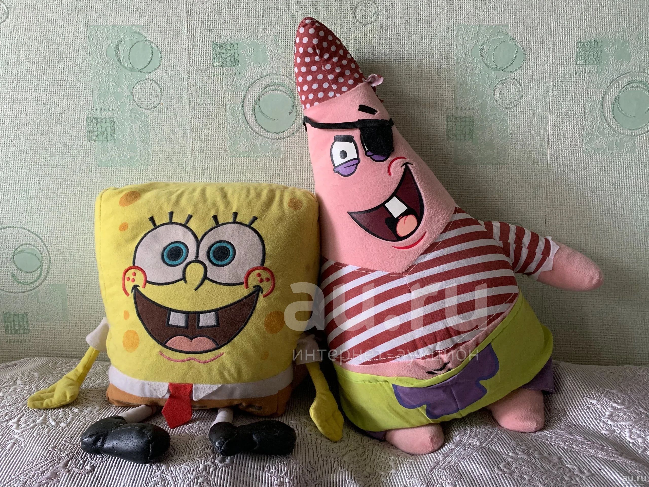 Игрушки большие: Спанч боб примерно 40 см, Патрик 60 см.