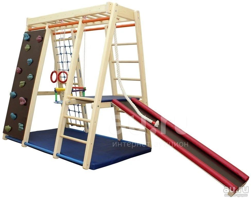 Крепление горки исключает падение горки. Горку можно прикрепить и поперек комплекса.