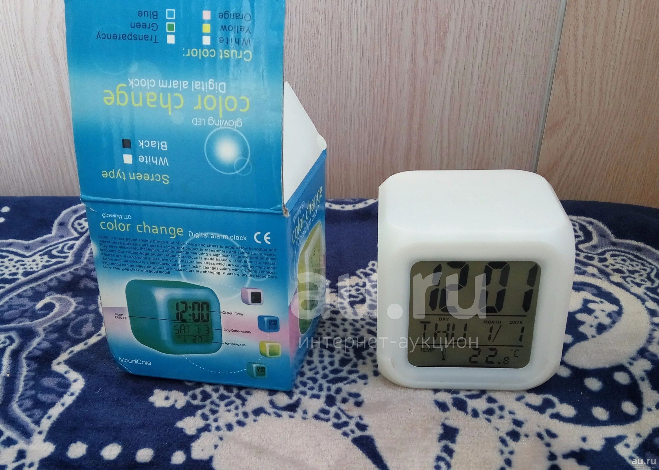 Цифровые часы-будильник с разноцветной подсветкой.