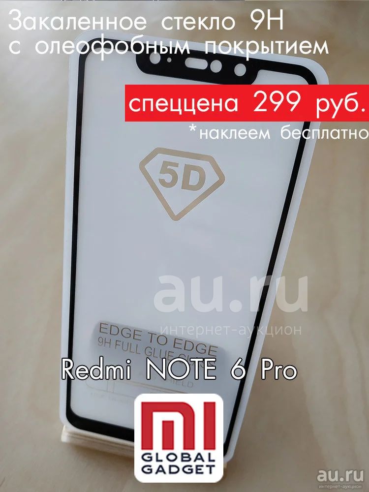 Стекло защитное Xiaomi Redmi NOTE 6 Pro | Черное | 5D закаленное с олеофобным покрытием 9H, полная поклейка | наклеем бесплатно, в наличии в шоуруме |