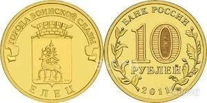 10 рублей 2011 года. Елец. Города воинской славы.