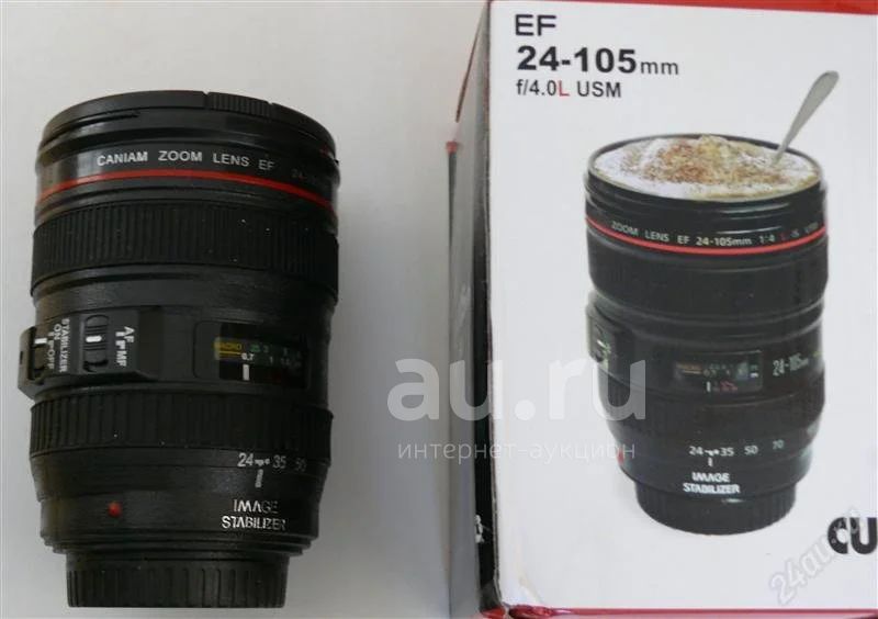 Кружка-объектив которая исполнена в виде объектива. За основу взята модель Canon EF 24-105 мм f/4 L IS USM. Внешне кружка повторяет данный объектив профессиональной серии только надпись Caniam Можно использовать в качестве кружки,карандашницы,небольшого цветочного горшка.Материал пластик,высота 12.5см.В комлекте :кружка,крышка,коробка.