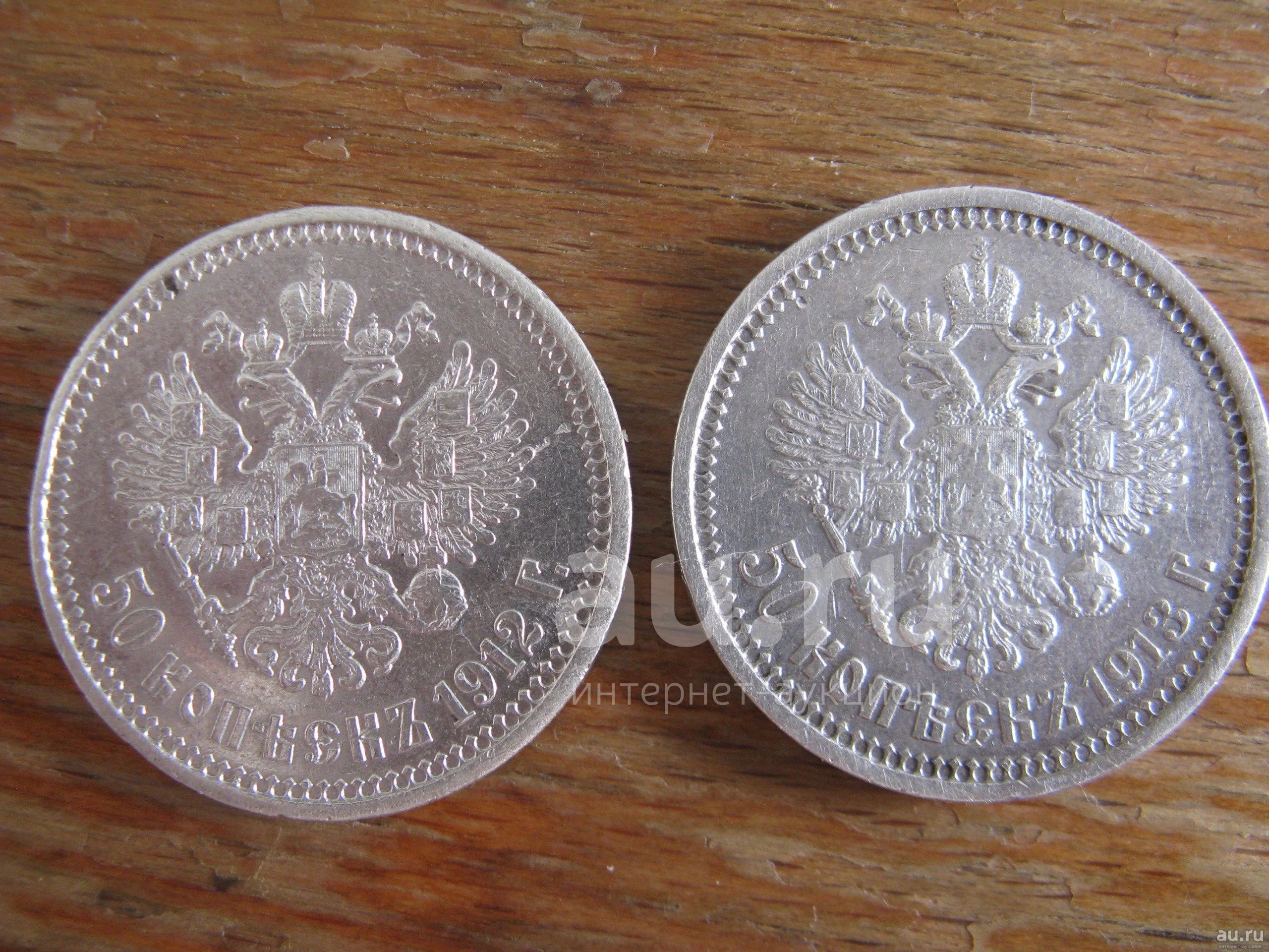 Одним лотом. 50 копеек 1912 года и 50 копеек 1913 года. Серебро. Шикарное коллекционное состояние.