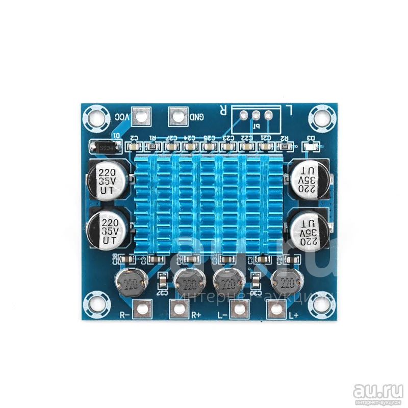 Стерео-усилитель D-класса на микросхемах TPA3116. Готовая к установке плата с радиатором. Обладает самым высоким КПД из всех классов и хорошим звучанием, технологичный усилитель.