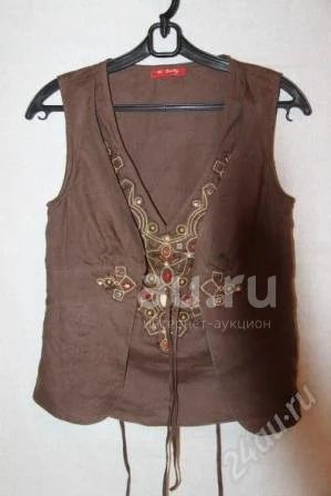 Топ летний из льна, коричневого цвета, с красивым украшением в виде камней.Очень красиво смотрится с белыми брюками или белой юбкой.