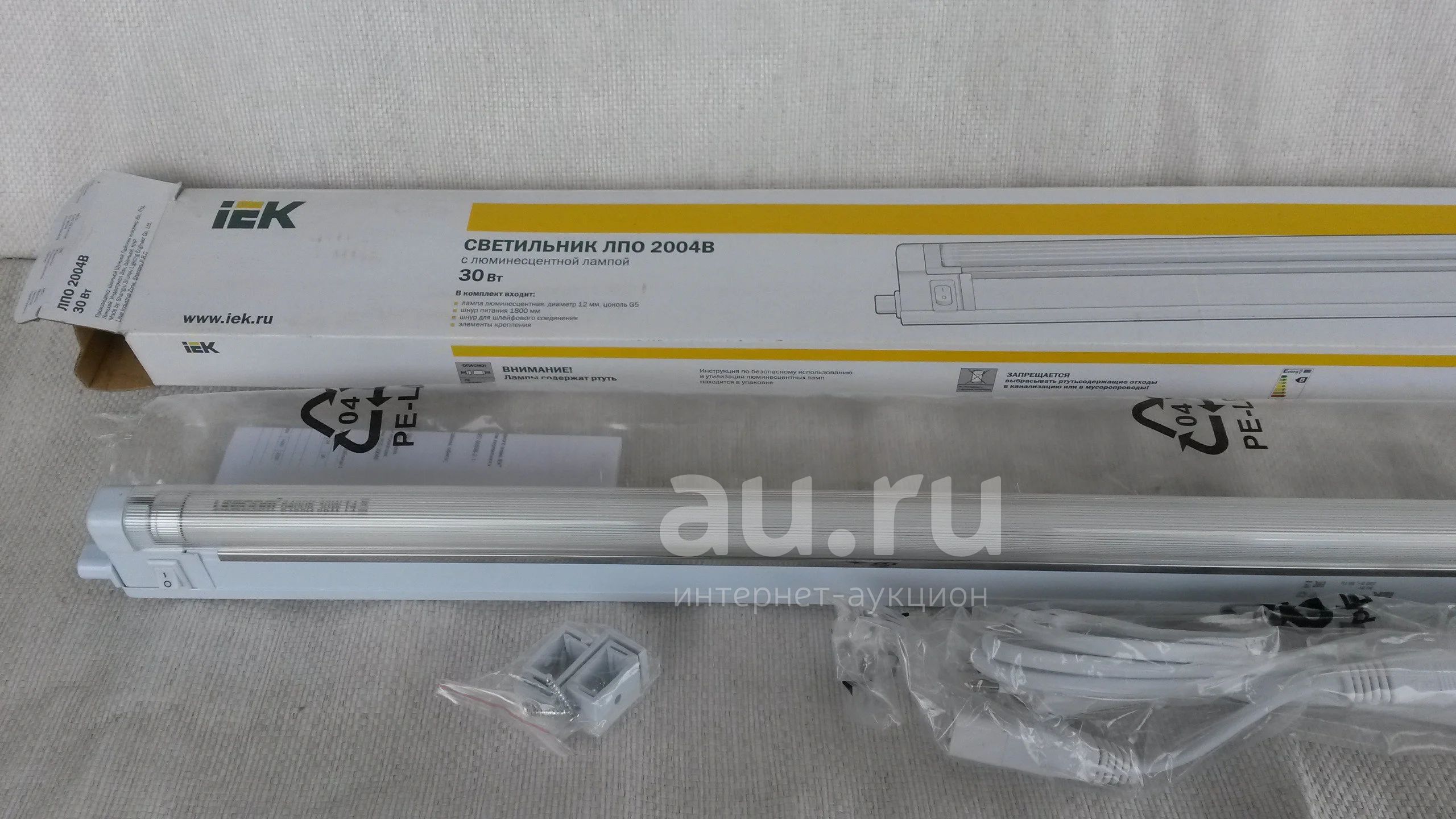 Светильник люминесцентный на кухню под шкаф линейный, до 30 Ватт, провод, крепеж, цоколь G5